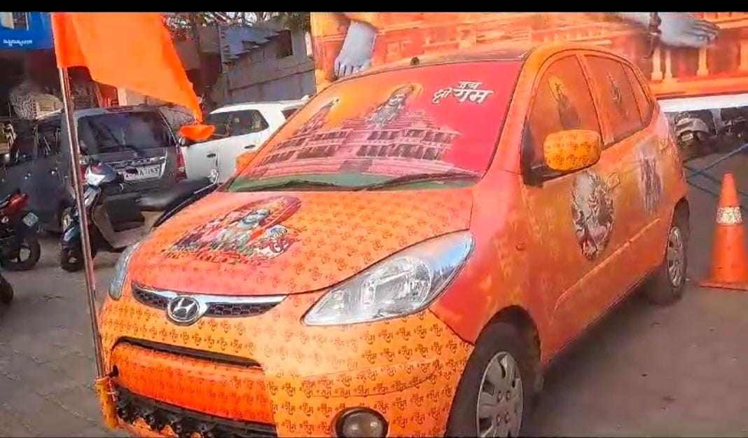 ಹೌದು, ನಗರದ ಹೊಸೂರಿನ ನಿವಾಸಿಯಾಗಿರುವ ಸಚಿನ್ ಮಿಸ್ಕಿನ್ ರಾಮಭಕ್ತನಾಗಿದ್ದು, ಈ ಹಿಂದಿನಿಂದಲೂ ಹಿಂದೂ ಧಾರ್ಮಿಕ ಕಾರ್ಯಗಳಲ್ಲಿ ತನ್ನನ್ನು ತಾನು ತೊಡಗಿಸಿಕೊಳ್ಳುತ್ತಿದ್ದ. ಈತ ಇದೀಗ ಅಯೋಧ್ಯೆಯಲ್ಲಿ ಶ್ರೀರಾಮ ಮೂರ್ತಿಯ ಪ್ರಾಣ ಪ್ರತಿಷ್ಠಾಪನೆ ಮಾಡುತ್ತಿರುವ ಹಿನ್ನೆಲೆಯಲ್ಲಿ, ತನ್ನ ಕಾರಿಗೆ ಸಂಪೂರ್ಣವಾಗಿ ಜೈಶ್ರೀರಾಮ ಘೋಷಣೆಗಳು, ಹನುಮಂತ, ರಾಮನ ಭಾವಚಿತ್ರದ ಸ್ಟೀಕರ್ ಹಚ್ಚುವ ಮೂಲಕ ತನ್ನ ವಿಶೇಷ ಅಭಿಮಾನವನ್ನು ತೋರಿಸಿದ್ದಾನೆ.