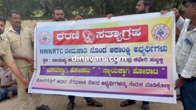 ಹುಬ್ಬಳ್ಳಿ: NWKRTC ಸಂಸ್ಥೆಯ ಅಭ್ಯರ್ಥಿಗಳು ಇಂದು ನಗರದ ಗೋಕುಲ್ ರಸ್ತೆಯಲ್ಲಿರುವ NWKRTC ಕಚೇರಿಯ ಮುಂದೆ ಧರಣಿ ಸತ್ಯಾಗ್ರಹ ನಡೆಸಿ ತಮ್ಮ ಹಕ್ಕಿಗಾಗಿ ಧ್ವನಿ ಎತ್ತಿದರು. ಸರ್ಕಾರವು 2019ರಲ್ಲಿ…