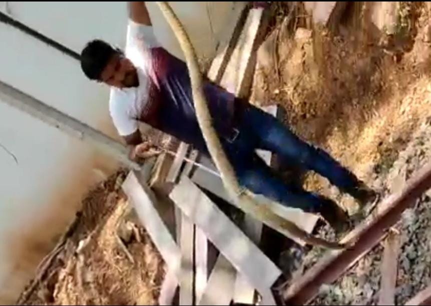 ಸುಮಾರು 9 ಅಡಿಯಷ್ಟು ಉದ್ಧವಿದ್ದ ಕೆರೆ ಹಾವು ಸ್ಮಾರ್ಟ್ ಸಿಟಿ ಯೋಜನೆ ನಡೆಯುತ್ತಿರುವ ಕಟ್ಟಡದ ಸಾಮಗ್ರಿಗಳ ಕೆಳಗೆ ಅವಿತು ಕೂತಿತ್ತು,ಇದನ್ನು ಗಮನಿಸದೇ ಕೆಲಸಗಾರರು ಸಾಮಗ್ರಿಗಳನ್ನು ತೆಗೆಯಲು ಹೋದಾಗ ಅಲ್ಲೇ ಇದ್ದ ಹಾವು ಒಮ್ಮೆಲೇ ಹೊರಗಡೆ ಬಂದಿದ್ದೆ.