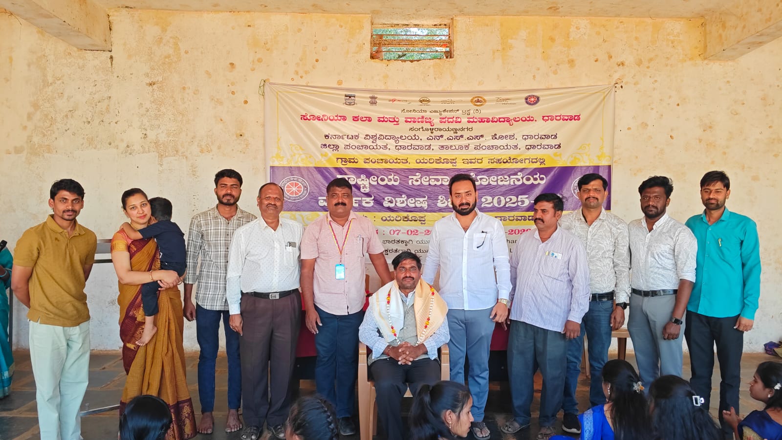 ಧಾರವಾಡ: ಜಿಲ್ಲೆಯ ಧಾರವಾಡ ತಾಲೂಕಿನ ಯರಿಕೊಪ್ಪ ಗ್ರಾಮದಲ್ಲಿ ಸೋನಿಯಾ ಪದವಿ ಮಹಾವಿದ್ಯಾಲಯ ರಾಷ್ಟ್ರೀಯ ಸೇವಾ ಯೋಜನೆ (ಎನ್ಎಸ್ಎಸ್) ಘಟಕದ ವತಿಯಿಂದ ಏಳು ದಿನಗಳ ವಾರ್ಷಿಕ ವಿಶೇಷ ಶಿಬಿರವನ್ನು ಹಮ್ಮಿಕೊಳ್ಳಲಾಗಿದ್ದು, ಏಳನೇ ದಿನ ಸಮಾರೋಪ ಸಮಾರಂಭವು ವಿಜೃಂಭಣೆಯಿಂದ ನೆರವೇರಿತು.