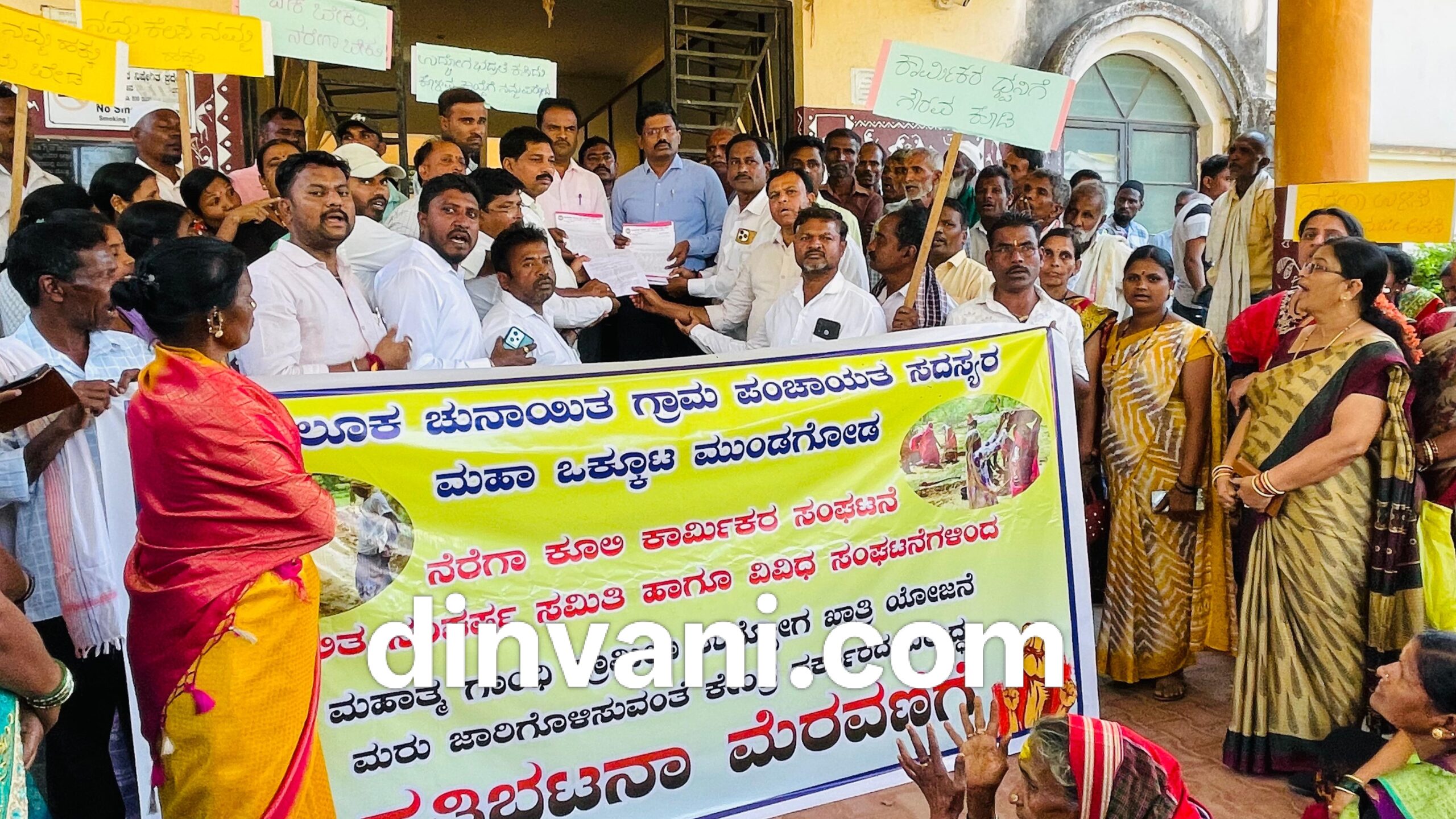- ಪ್ರತಿಭಟನೆಯ ಬಳಿಕ ತಹಶೀಲ್ದಾರ ಹಾಗೂ ತಾಲೂಕಾ ಪಂಚಾಯತ್ ಕಾರ್ಯನಿರ್ವಹಣಾಧಿಕಾರಿಗಳ ಮೂಲಕ ರಾಷ್ಟ್ರಪತಿ ಹಾಗೂ ಮುಖ್ಯಮಂತ್ರಿ ಅವರಿಗೆ ಮನವಿ ಪತ್ರ ಸಲ್ಲಿಸಲಾಯಿತು. ಮನವಿಯಲ್ಲಿ ಮಹಾತ್ಮಾ ಗಾಂಧಿ ಗ್ರಾಮೀಣ ಉದ್ಯೋಗ ಖಾತ್ರಿ ಯೋಜನೆಯ ಹೆಸರನ್ನು ಬದಲಾಯಿಸುವ ಕೇಂದ್ರ ಸರ್ಕಾರದ ನಿರ್ಧಾರವನ್ನು ಹಿಂಪಡೆಯಬೇಕು ಹಾಗೂ ನರೆಗಾ ಯೋಜನೆಯನ್ನು ಇನ್ನಷ್ಟು ಬಲಪಡಿಸಬೇಕು ಎಂದು ಆಗ್ರಹಿಸಲಾಯಿತು.